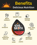 NUTRITIOUS & RESTORATIVE BEEF BONE BROTH - Recommended by nutritionists, our beef bone broth contains collagen, gelatin, protein, vital nutrients and essential amino acids to support youthful skin, hair & nails, promote a healthy gut and joints, and boost your immune system. Great for pre or post-workout recovery.