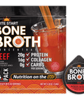 Premium beef bone broth, not a powder, concentrated and packaged for on-the-go convenience. Our beef bone broth has 20g protein & 16g collagen, providing you with a higher concentration per serving than standard single serve powders.