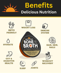 DELICIOUS BEEF MUSHROOM BONE BROTH WITH THE HIGHEST COLLAGEN & PROTEIN PER SERVING - 16 grams of collagen, 20 grams of protein per serving. Available in 6 nutritious, deep rich flavors: Chicken, Chicken Ginger & Turmeric, Chicken Miso. Beef, Beef Truffle with Rosemary, Beef Mushroom (Lion’s Mane, Shiitake, Porcini).