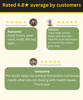 We make our bone broth concentrates from 18-hour slow simmered grass-fed beef bones, free-range chicken bones, organic vegetables, herbs & spices. Humanely raised, ethically sourced, No fillers, artificial ingredients or preservatives. No antibiotics, No hormones, Non-GMO. Packaged in single use container that is perfect for on-the-go or at home. Just add hot water and start sipping.
