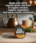 We make our bone broth concentrates from 18-hour slow simmered grass-fed beef bones, free-range chicken bones, organic vegetables, herbs & spices. Humanely raised, ethically sourced, No fillers, artificial ingredients or preservatives. No antibiotics, No hormones, Non-GMO. Packaged in single use container that is perfect for on-the-go or at home. Just add hot water and start sipping.